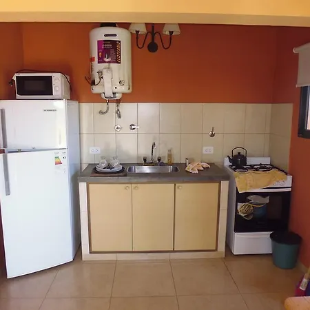 Die Unterkunft in Gualeguaychú ist mit einer Mikrowelle, einem Kühlschrank und Küchenutensilien für die Selbstversorgung in eine Essecke ausgestattet.